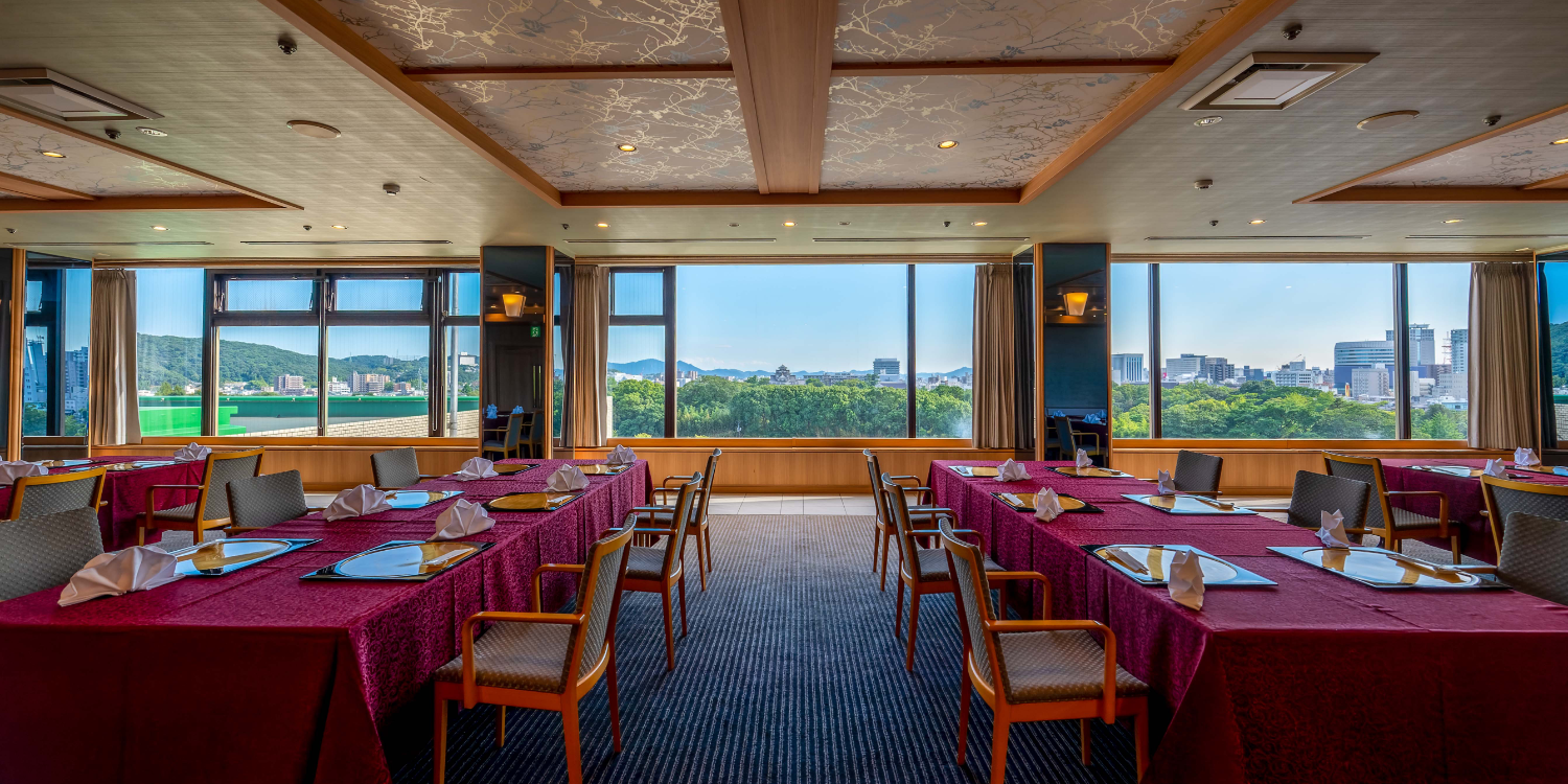 岡山城、後楽園を一望できる会場は、会議後のご会食に最適です。