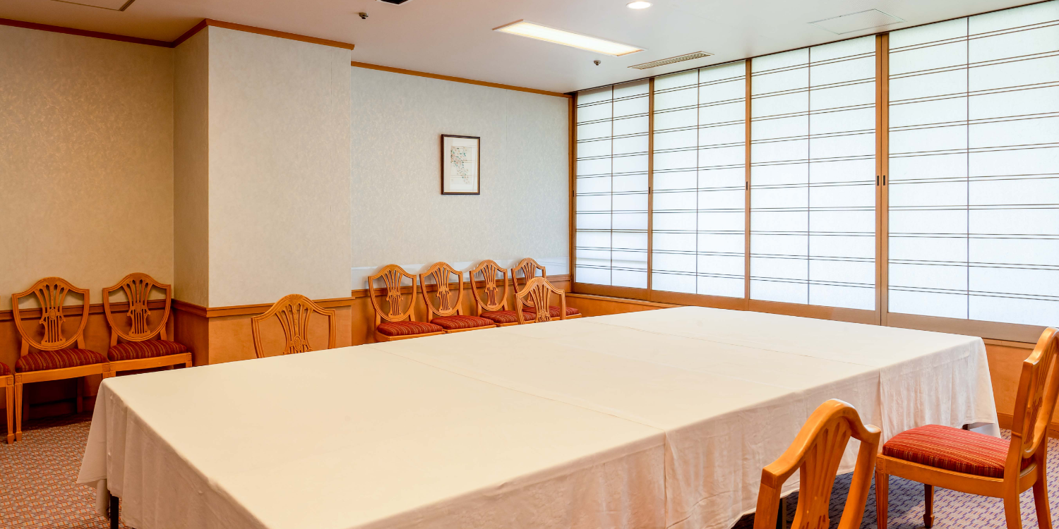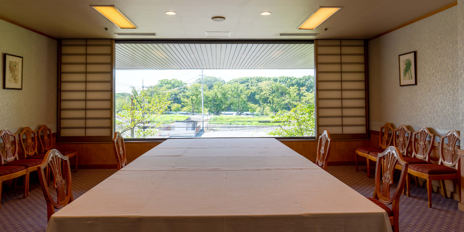 アネックス2階「唯心の間」。 少人数のご会食、お顔合わせ食事会に最適です。 南向きの窓から桜の季節は、旭川さくら道沿いの桜並木をご覧いただけます。