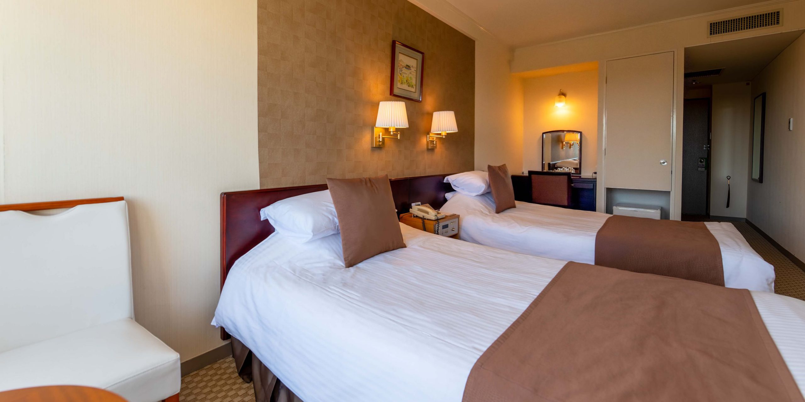 Simple and functional room with warm tones of colors. We provide you a relaxing time and space.