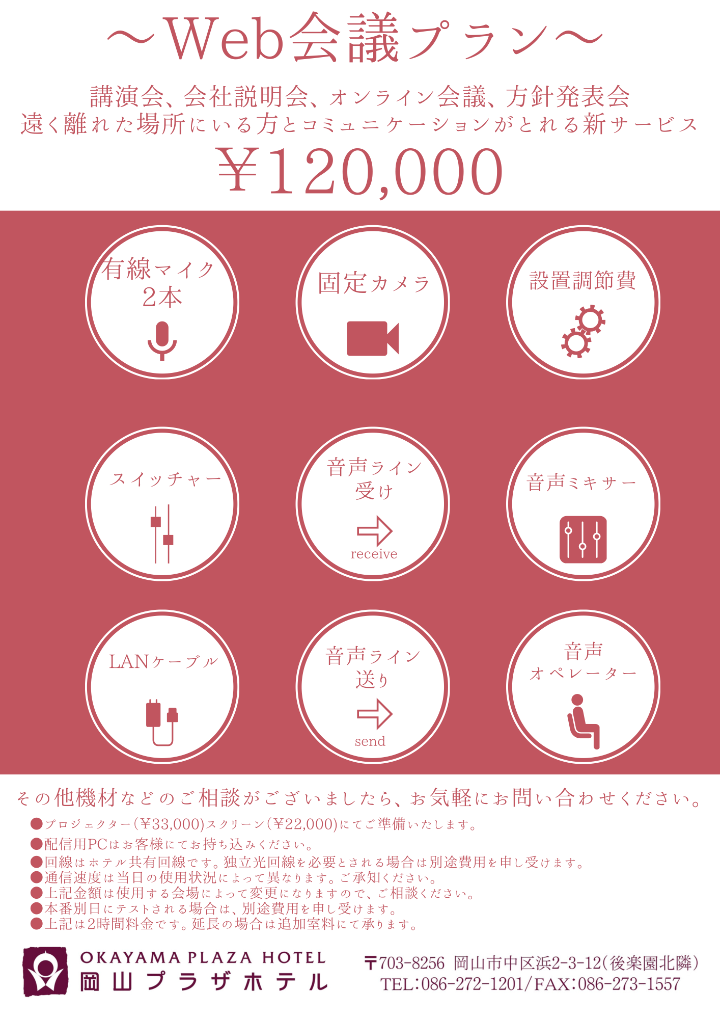 岡山プラザホテル 〒703-8256 岡山県岡山市中区浜2-3-12 TEL 086-272-1201 FAX 086-273-1557