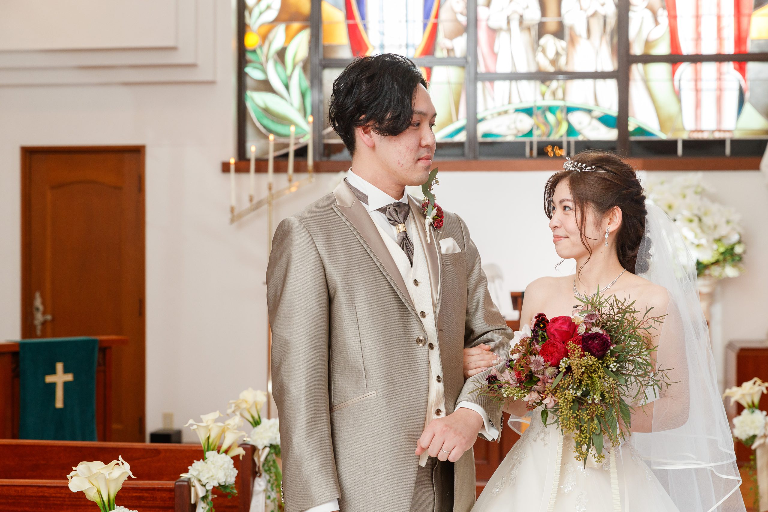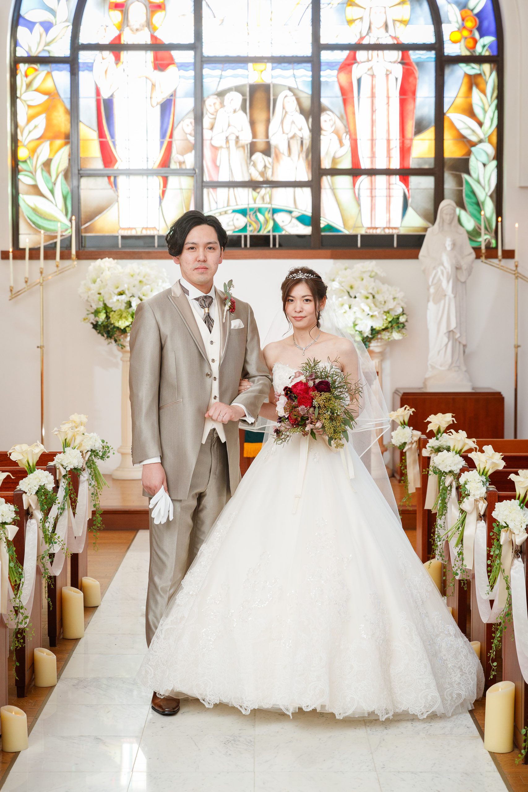 お母様からのベールダウン、お父様とのバージンロード、とても感動的で素敵でした。