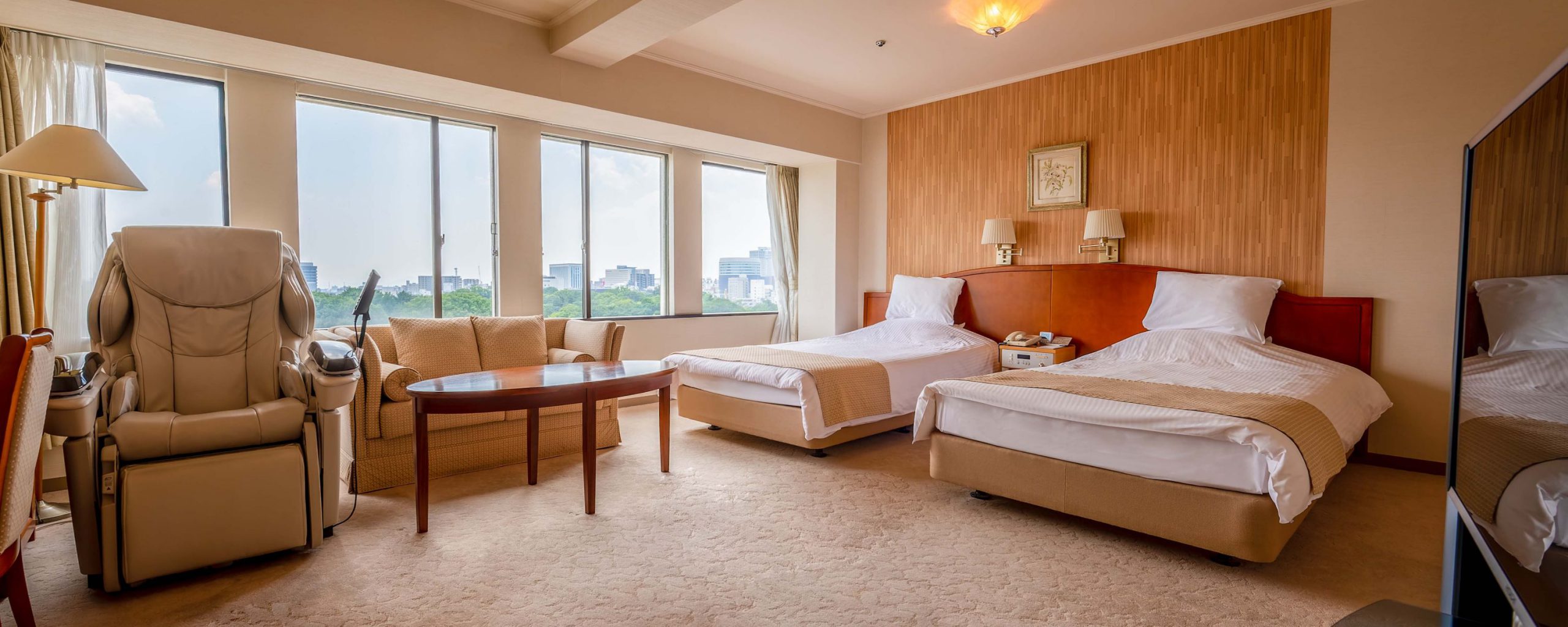 岡山駅から車で5分の市内中心部にあり、客室やレストランから岡山城や市内中心部が一望できます。
