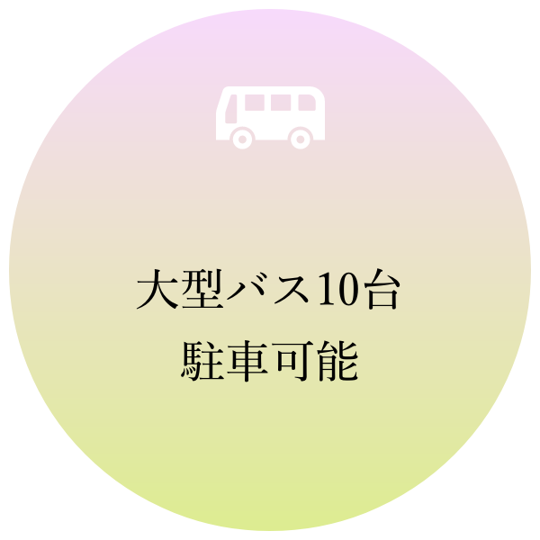 駐車場完備 団体旅行・グループ旅行での大型観光バス・マイクロバスでお越し頂けます。