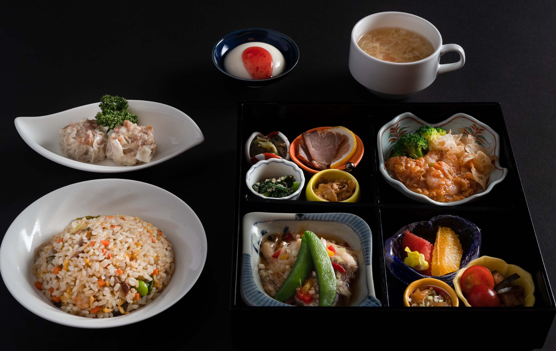 岡山プラザホテル特製の焼売と瀬戸内産の食材をふんだんに使用した御膳をお楽しみください。
